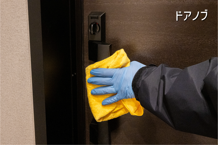 最後は拭き掃除。毎日触れたり使っているはずのドアノブやシューズクローゼットですが、掃除頻度は意外と少ないかと思います。濡れたタオルを使ってこの機会にきれいにしてみましょう。