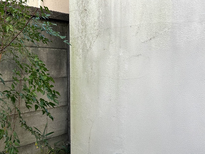 築年数が経過したころから徐々にこの症状が出てくることがあります。紫外線により塗料の顔料が浮き上がっている状態で、防水性が低下しているサインでもあります。